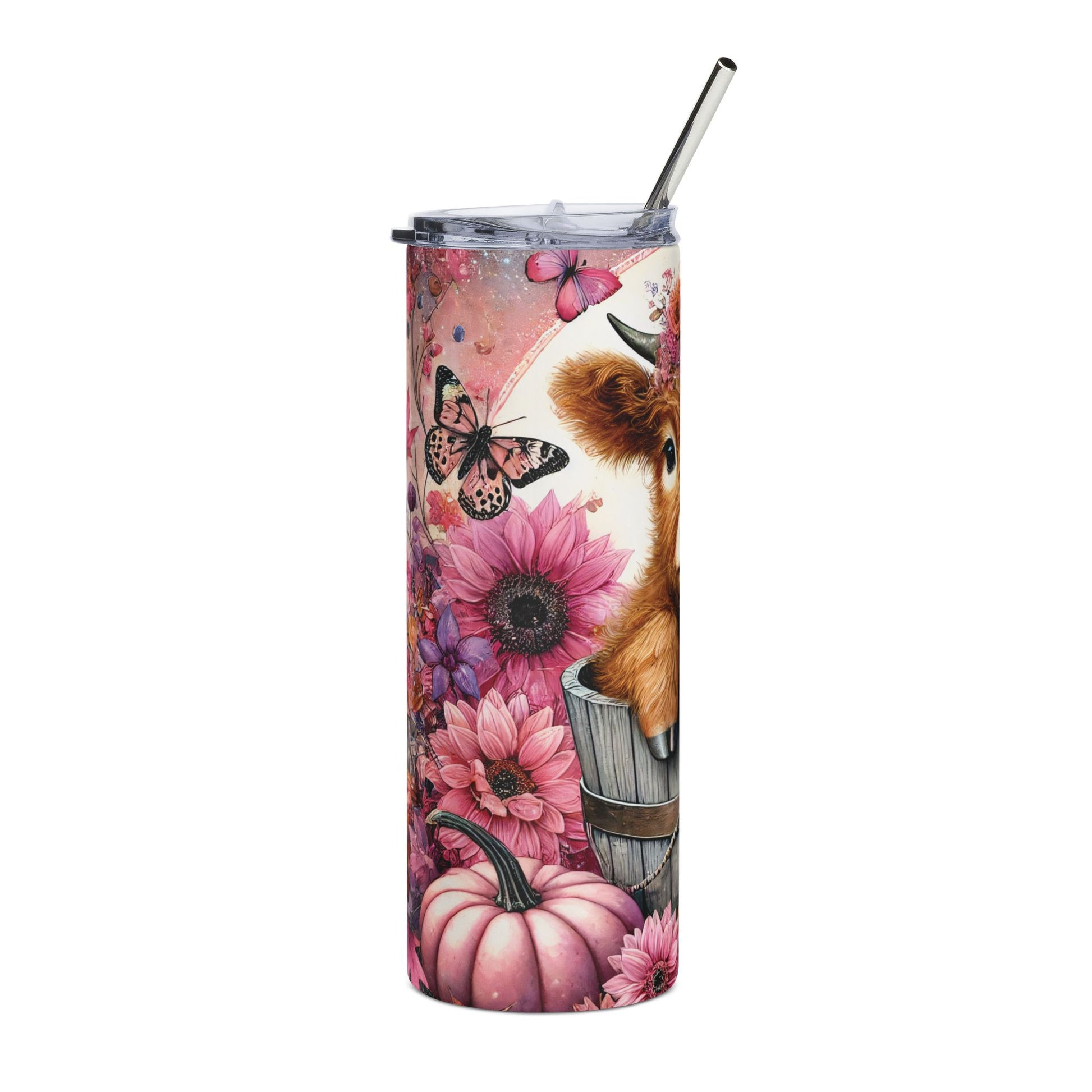 Adorable Cow Floral Tumbler, 20oz - Cute Cow Drinkware for Farmhouse Decor, Birthday Gift, Outdoor Events, & Fall Celebrations