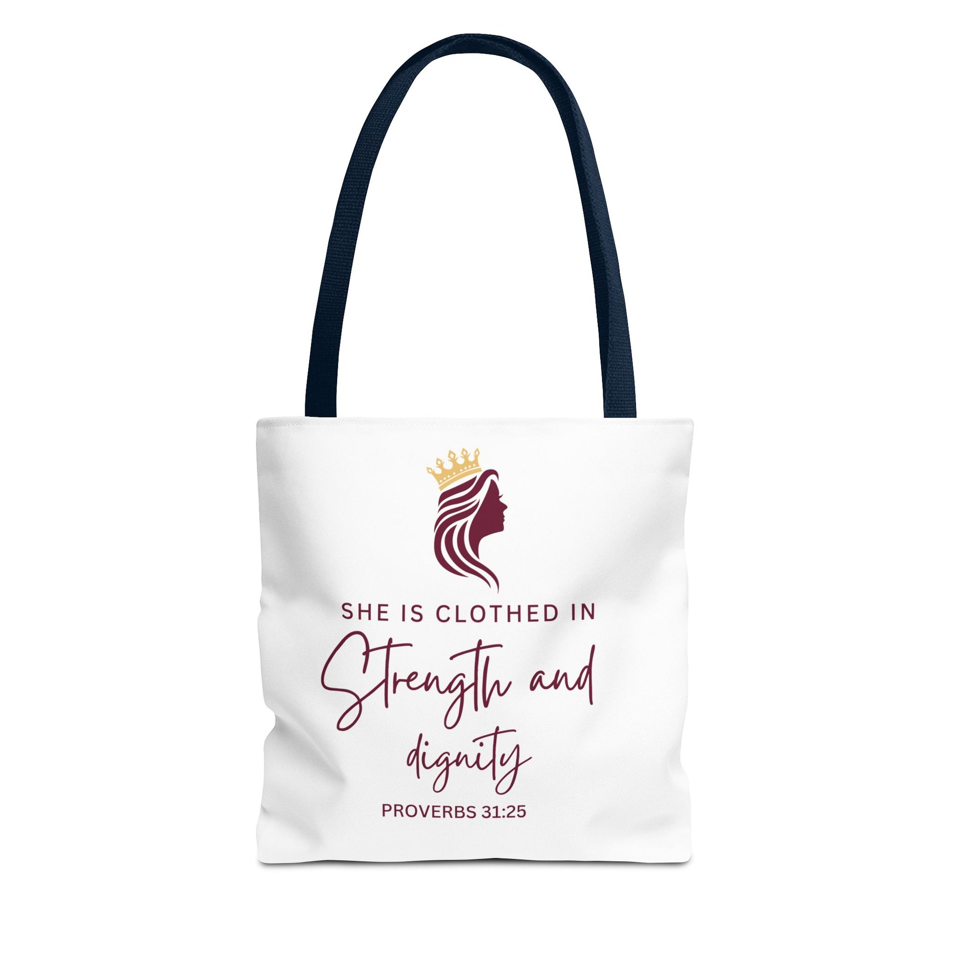 This stylish Tote Bag is designed to empower and inspire. Adorned with an elegant and uplifting quote, it brings a sense of confidence and grace to your daily life. Perfect for carrying essentials, it's ideal for strong, modern women who value both functionality and beauty. Imagine running errands, heading to the gym, or going out with friends while proudly showcasing this meaningful piece. It makes a thoughtful gift for special occasions such as birthdays, Mother’s Day, or religious celebrations. With its versatile design, it seamlessly fits into any wardrobe and is perfect for any season or celebration.